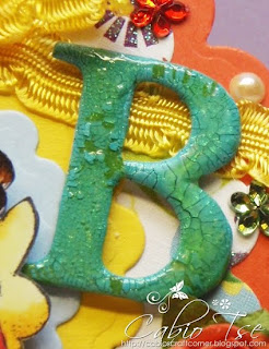 Here are some closer view of the crackle paint chipboard and butterfly shape. I first painted them with 'broken china' distress crackle paint, then I sprayed some (homemade) metallic green shimmery mist on them, then when it dried, I applied glossy accents on them to get a shiny effect. Yep, a lot of work for just little embellishments, but I really like the outcome. I will do up a tutorial on a very easy made shimmery mist in a later date. Please stay tune!!