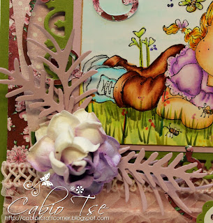 Here is my finished card. Sometimes ago, I saw a card from Mindy's Blog and OMG, her coloring is so gorgeous. I thought what a great idea doodling the grass around Tilda and always wanted to try it myself. The other day, I checked my Magnolia stamps from Magnolia-licious Store and found my Explorer Tilda, so I decided to try that and create a grass field for her with my Copic markers.